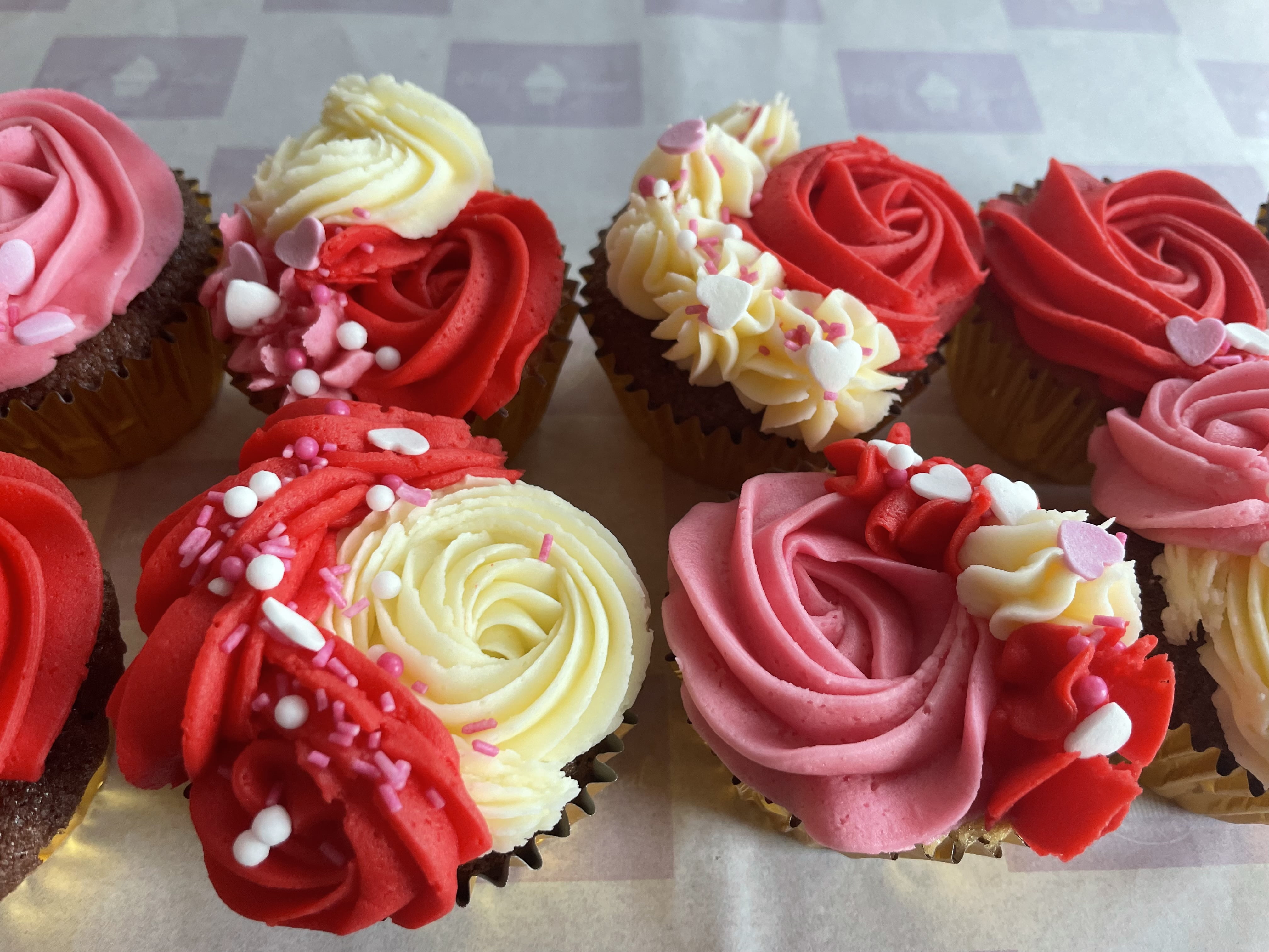 6 random Cupcakes, or contact us if you have something in mind. Please note that our cupcakes contain gluten, milk, soya and eggs.